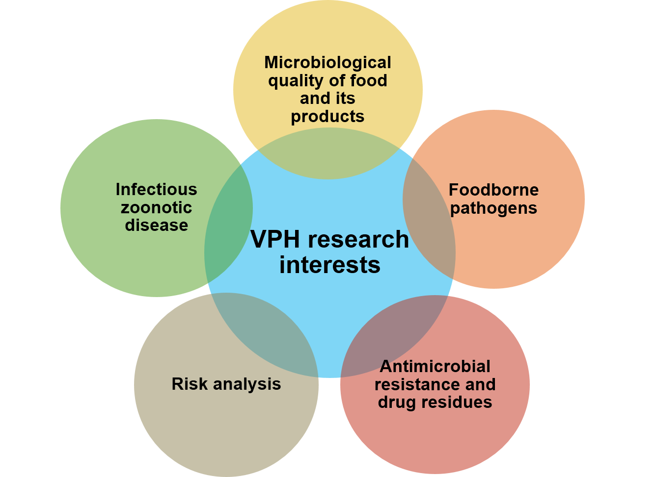 The discipline of Veterinary Public Health fosters ongoing research aimed at addressing regional challenges, with a particular focus on food safety and zoonotic diseases. Research topics are often grounded in the contexts of students’ home countries and their professional experiences. Areas of emphasis include the microbiological quality of food and food products, infectious zoonotic diseases, foodborne pathogens, risk analysis, antimicrobial resistance, drug residues, and related issues.